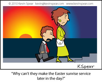 I didn’t look quite as bad as the guy in my cartoon. Still, it was far more casual than past Easters. I heard stories of people dressing up anyway for the holiday. I would say they probably felt better and it helped lift their spirits. I will have to try it this weekend.